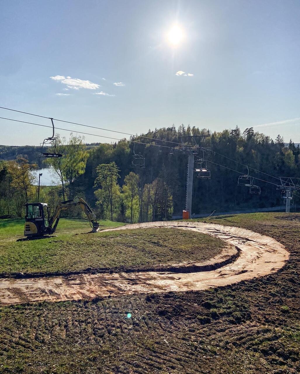 The construction of Munaka Bikepark marked our first official project as CYCLESHAPES OÜ. Since 2020, we have developed, built, and maintained the trails year after year, refining the riding experience. Munaka Bikepark became a significant step forward for the local mountain biking scene, introducing the concept of a modern downhill bike park to Estonia and bringing a new generation of young riders into the sport. The bike park consists of three distinct trails: a blue flow line, a red-rated jump line, and a green-level slalom track. Beyond the bike park itself, the surrounding area offers a diverse network of enduro trails, expanding the riding opportunities even further. A solid fleet of rental e-bikes makes these trails accessible to a wider range of riders, turning Munaka into a well-rounded riding destination.